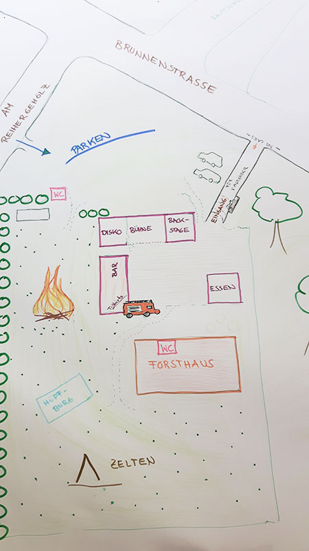 Hier ist unser Lageplan, wo Du uns findest, und wo Du alles findest, wenn Du angekommen bist.
